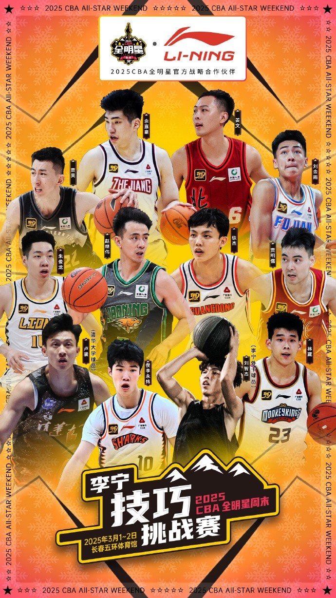 2月20日讯 CBA官方宣布了2025CBA全明星周末的阵容名单,详情如下: