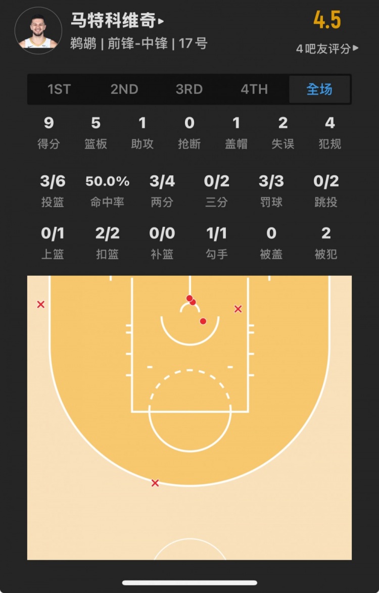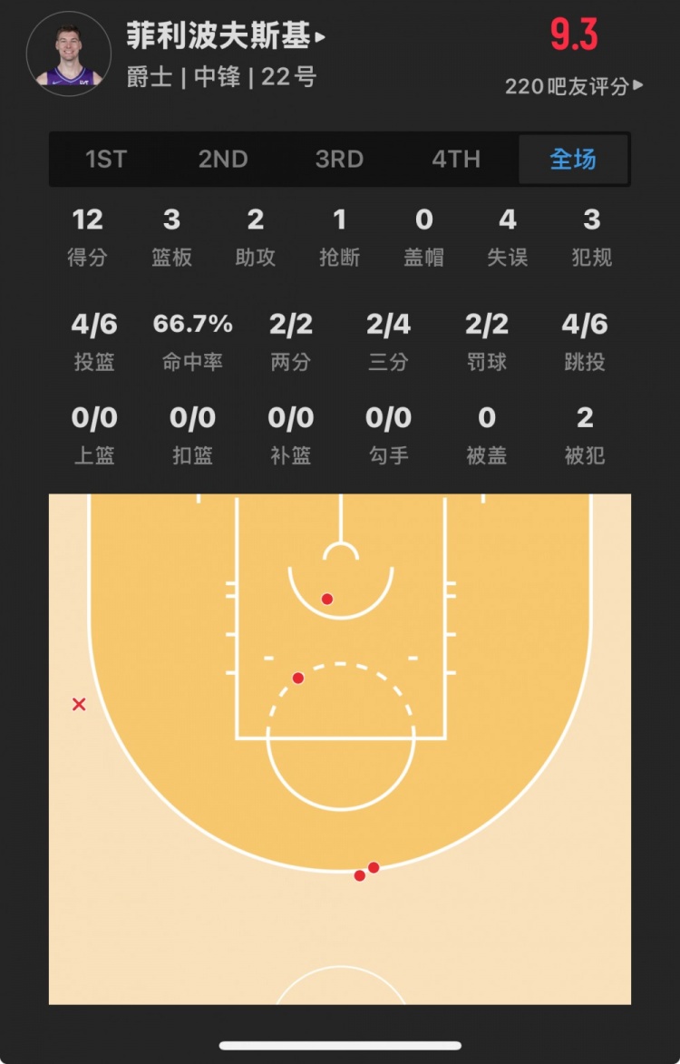 爵士32号秀 凯尔-菲利波夫斯基 登场16.4分钟