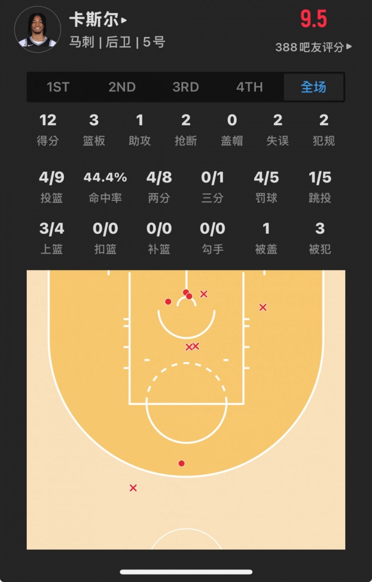 菜鸟丨榜眼22+6 卡斯尔12分2断 科利尔12助 勇士52号秀三记三分