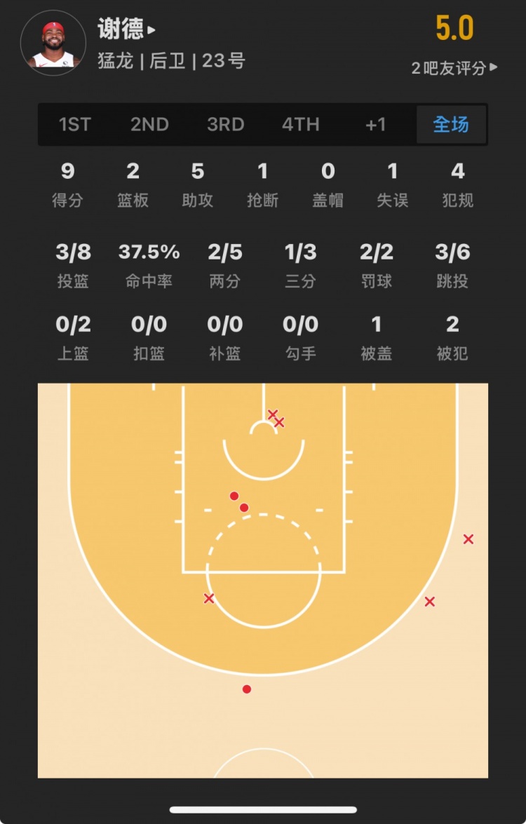 猛龙45号秀 贾马尔-谢德 登场17.7分钟