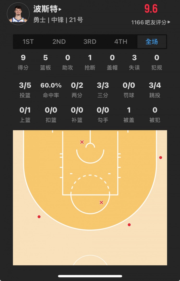 勇士52号秀 昆滕-波斯特 登场13.7分钟