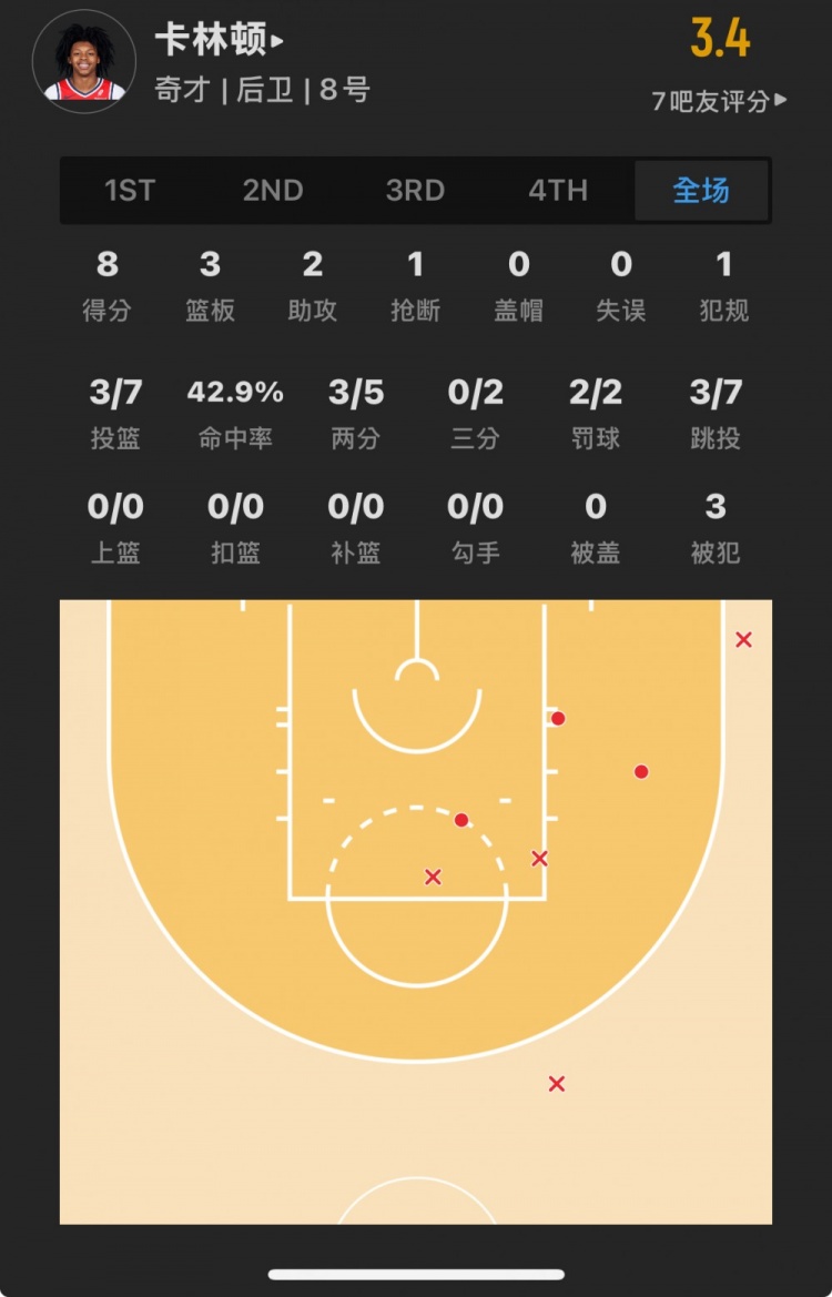 奇才14号秀 卡尔顿-卡林顿 登场23.5分钟