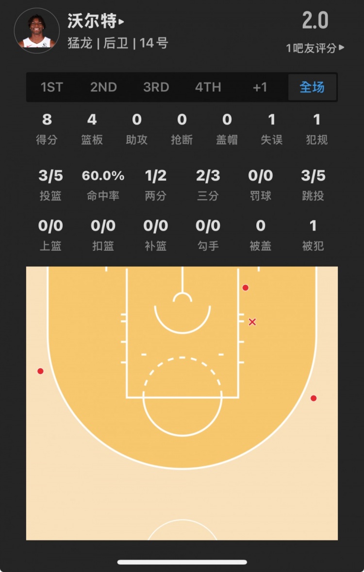猛龙19号秀 贾科比-沃尔特 登场17.3分钟