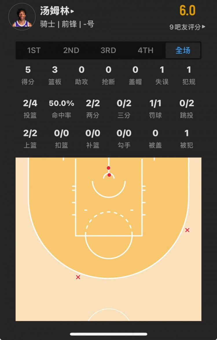 骑士落选秀 奈考恩-汤姆林 登场7.5分钟