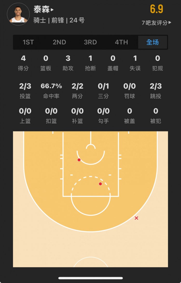 骑士20号秀 杰伦-泰森 登场7.5分钟