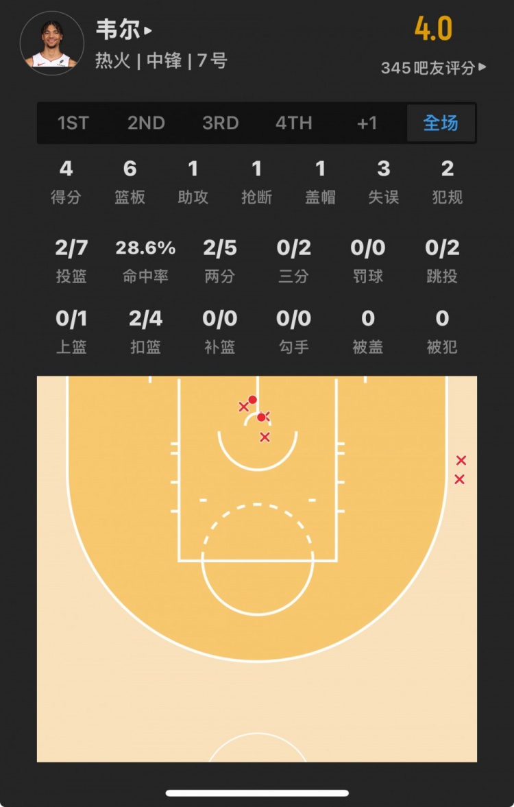 热火15号秀 克雷尔-韦尔 登场20.7分钟