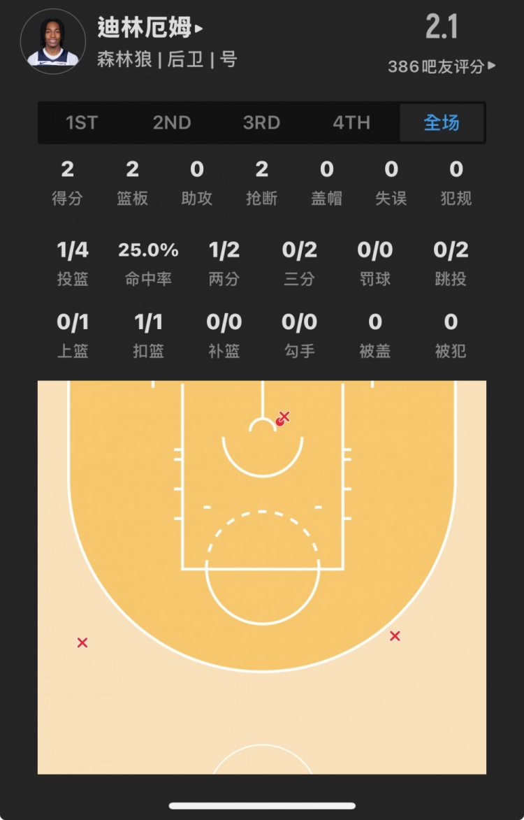 森林狼8号秀 罗布-迪林厄姆 登场8.1分钟