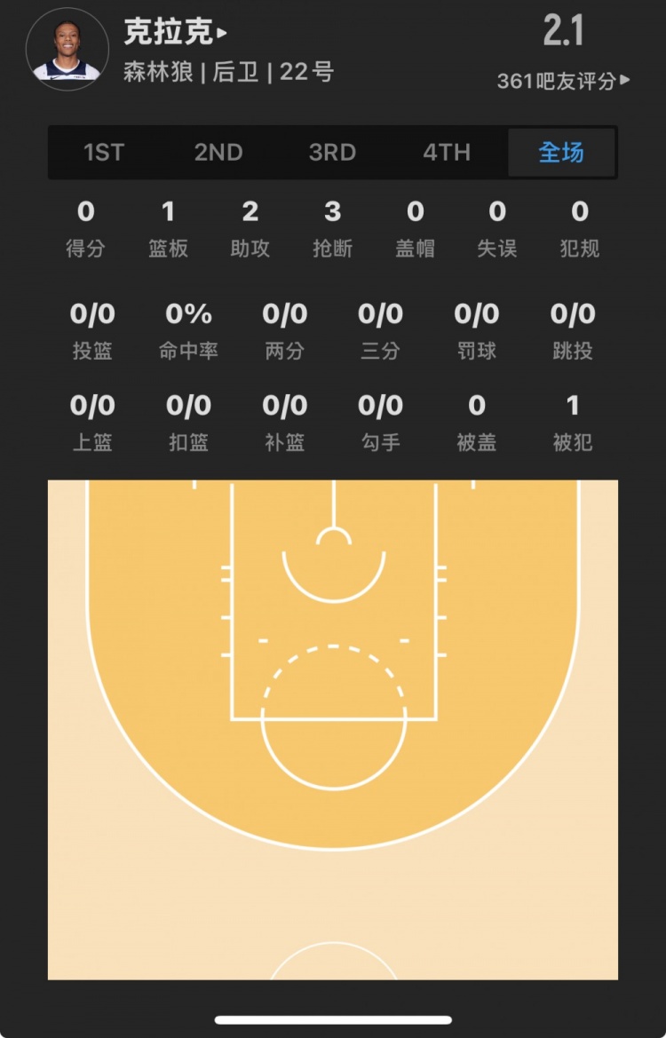 森林狼23年53号秀 杰伦-克拉克 登场20.4分钟