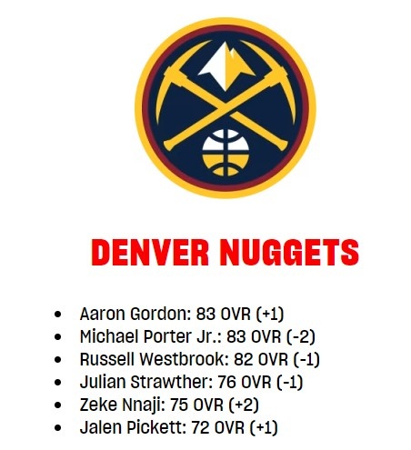 3月7日讯 NBA 2K官网更新了掘金球员的能力值情况,阿隆-戈登上双、威少、小迈克尔-波特下降,具体如下:
