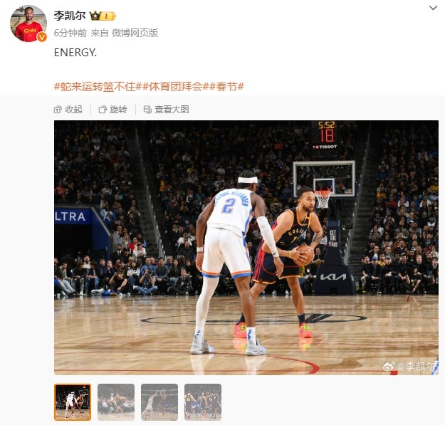 2月1日讯 今天,勇士球员李凯尔更新了个人微博。