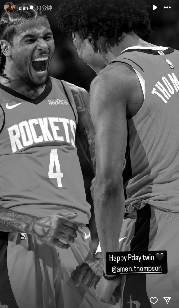 兄弟情深!杰伦-格林INS晒合照:祝阿门-汤普森生日快乐 1月31日讯 今天是火箭二年级新秀阿门-汤普森的22岁生日。杰伦-格林在INS上转发了两人的合照,并祝阿门-汤普森生日快乐。 2025/01/31