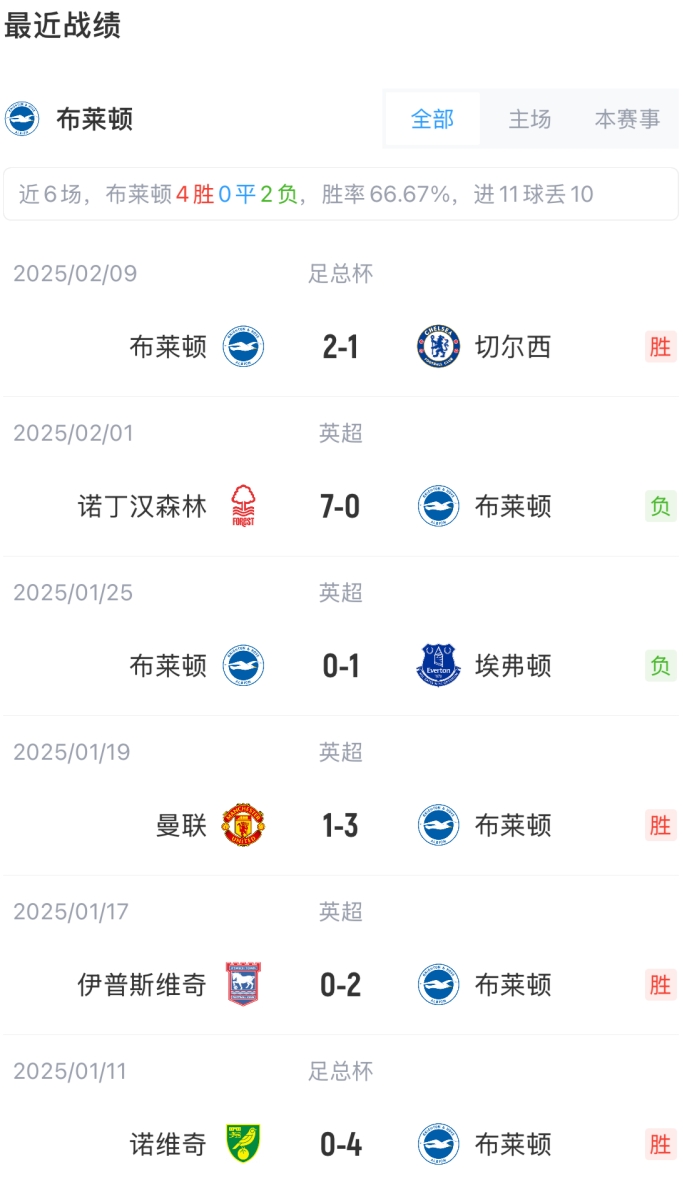 布莱顿替补:39-拉什沃斯、16-卡欣、33-奥莱利、26-阿亚里、11-阿迪格拉、27-韦弗、25-迭戈-戈麦斯、8-格鲁达、9-若昂-佩德罗