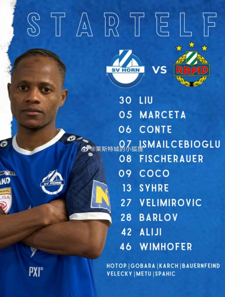 热身赛SV霍恩1-0维也纳快速二队,中国门将刘邵子洋首发出战