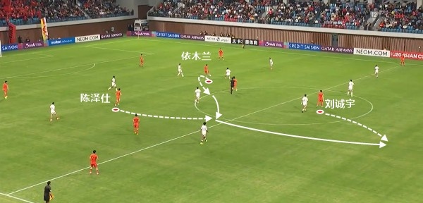 依木兰最被球迷津津乐道的一幕,就是发生在跟卡塔尔U20的比赛里。当时依木兰用一个布斯克茨式转身完成变向,随后送出直塞球给到队友陈泽仕,带来了随后的反击机会。