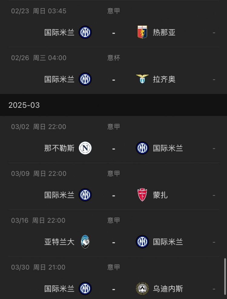 国米未来赛程↓
