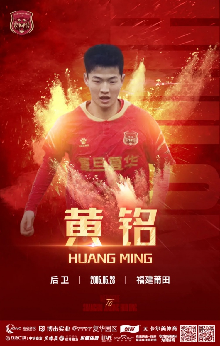 经与上海申花足球俱乐部友好协商,球员黄铭正式租借加盟上海嘉定汇龙足球俱乐部