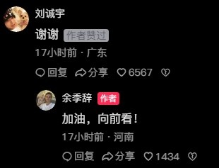 U20亚洲杯1/4决赛国青遗憾失利后,此役错失点球以及近距离绝佳良机的刘诚宇,成为了舆论当中一些负面情绪攻击的焦点。对此,一位网名“余季辞”的球迷在社媒发表长文安慰了刘诚宇,并向他送上了鼓励,刘诚宇本人也在评论区留言“谢谢”。