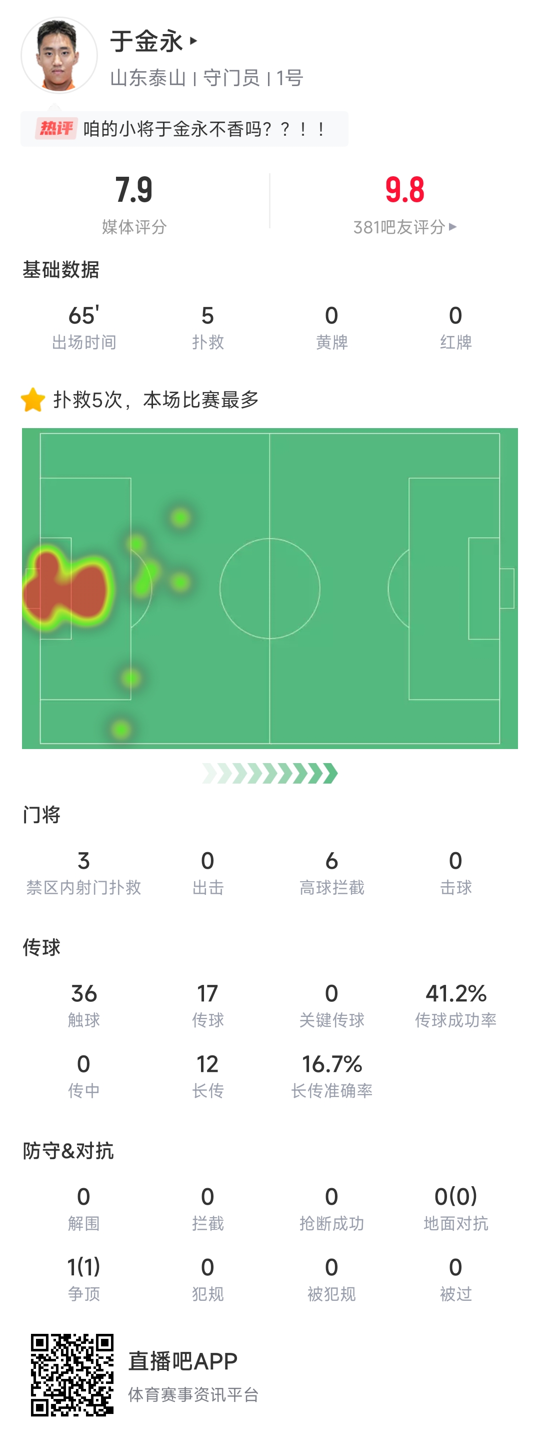 替补出战完成多次扑救!媒体人:于金永很稳,未来可以多用用