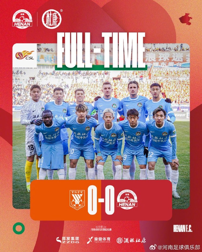 河南俱乐部酒祖杜康0-0山东泰山 下轮客场对阵梅州客家