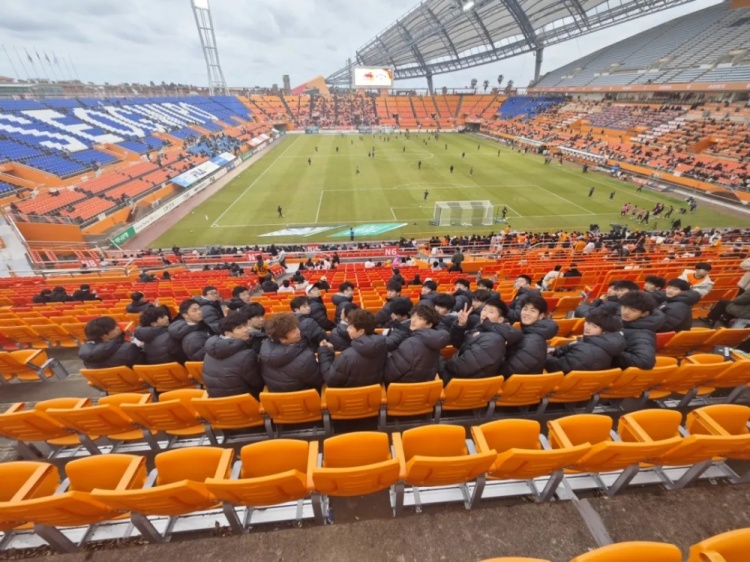 此外,为了让队员们更好地了解当地的足球文化,也作为努力训练之余的调剂,教练组还在冬训期间组织全队观看了K联赛济州SK对阵首尔的比赛,希望队员能够在观赛的过程中有所收获。
