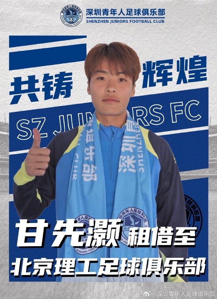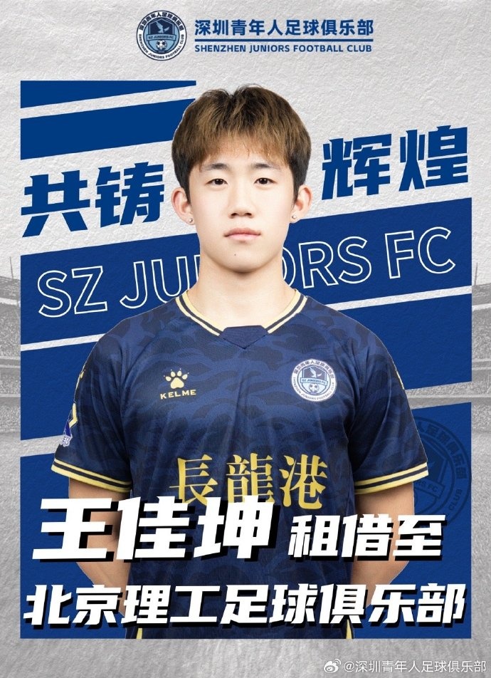深圳青年人官方:王佳坤、甘先灏租借加盟北理工