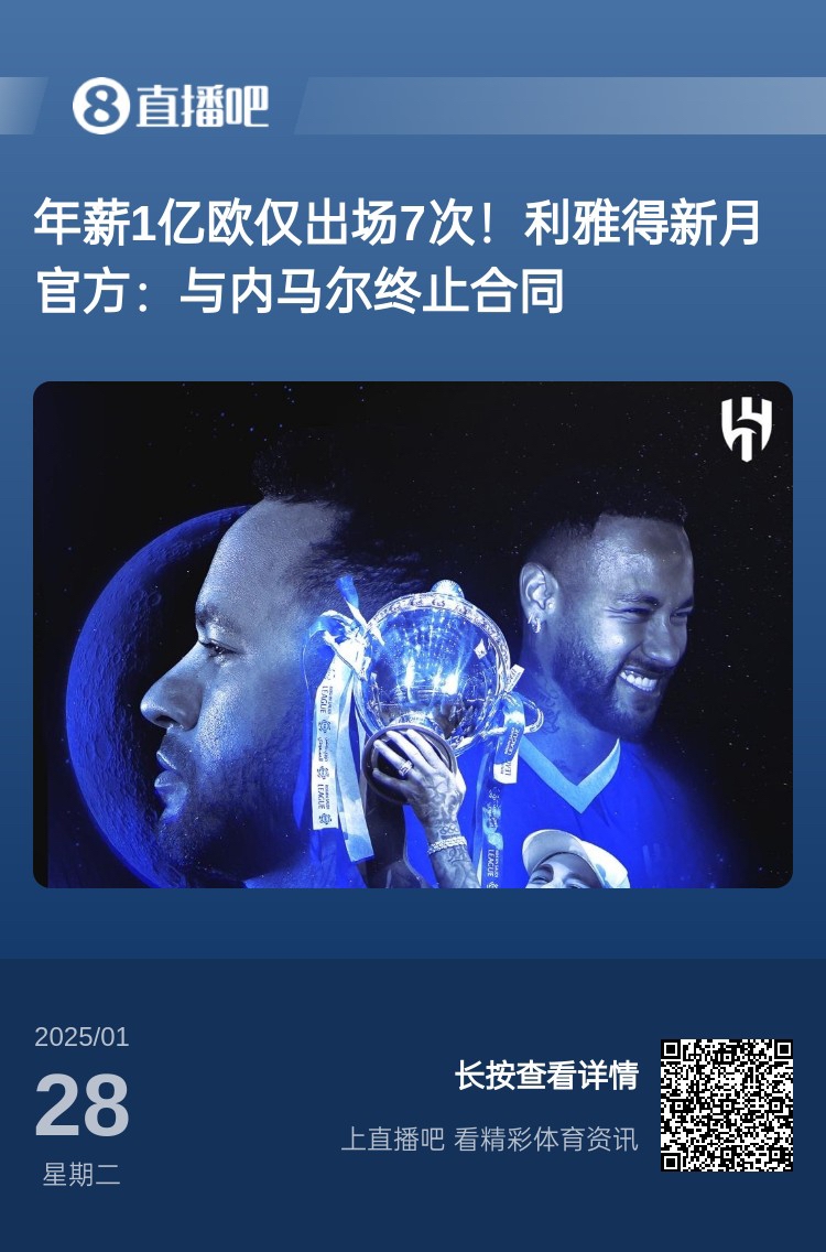 要钱何用?内马尔在新月年薪1亿出场7次,免签桑托斯1个月即追平