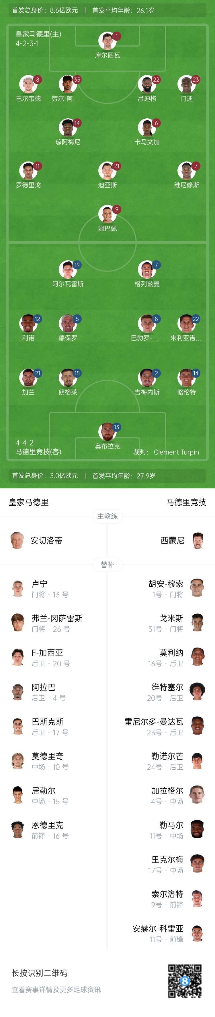 马竞近4次面对皇马取得1胜3平,是近7年来对皇马的最长连续不败