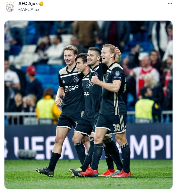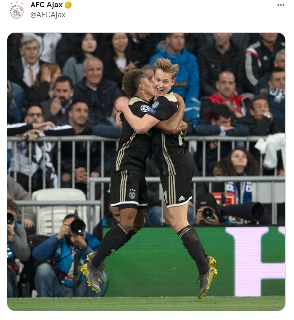 6年前的今天,欧冠1/8决赛次回合,皇马主场1-4惨败阿贾克斯,阿贾克斯青年军淘汰皇马杀入八强。阿贾克斯官推晒出多图,重温这场经典战役。