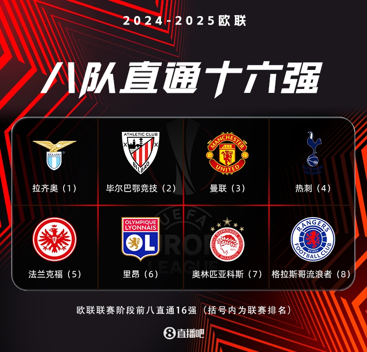 欧联最终积分榜:蓝鹰曼联热刺直通,费内巴切第24极限进附加赛