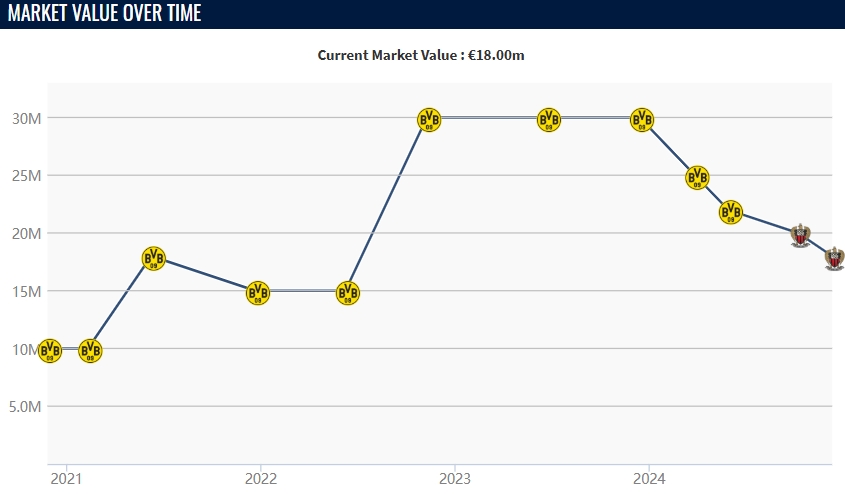 穆科科现年20岁,但据此前图片报报道, 穆科科年龄被改小了4岁,他“父亲”亲承球员并非自己亲生。本赛季这位德国前锋被多特租借前往尼斯,出场22场比赛,仅打进2球。目前球员德转身价为1800万欧元。