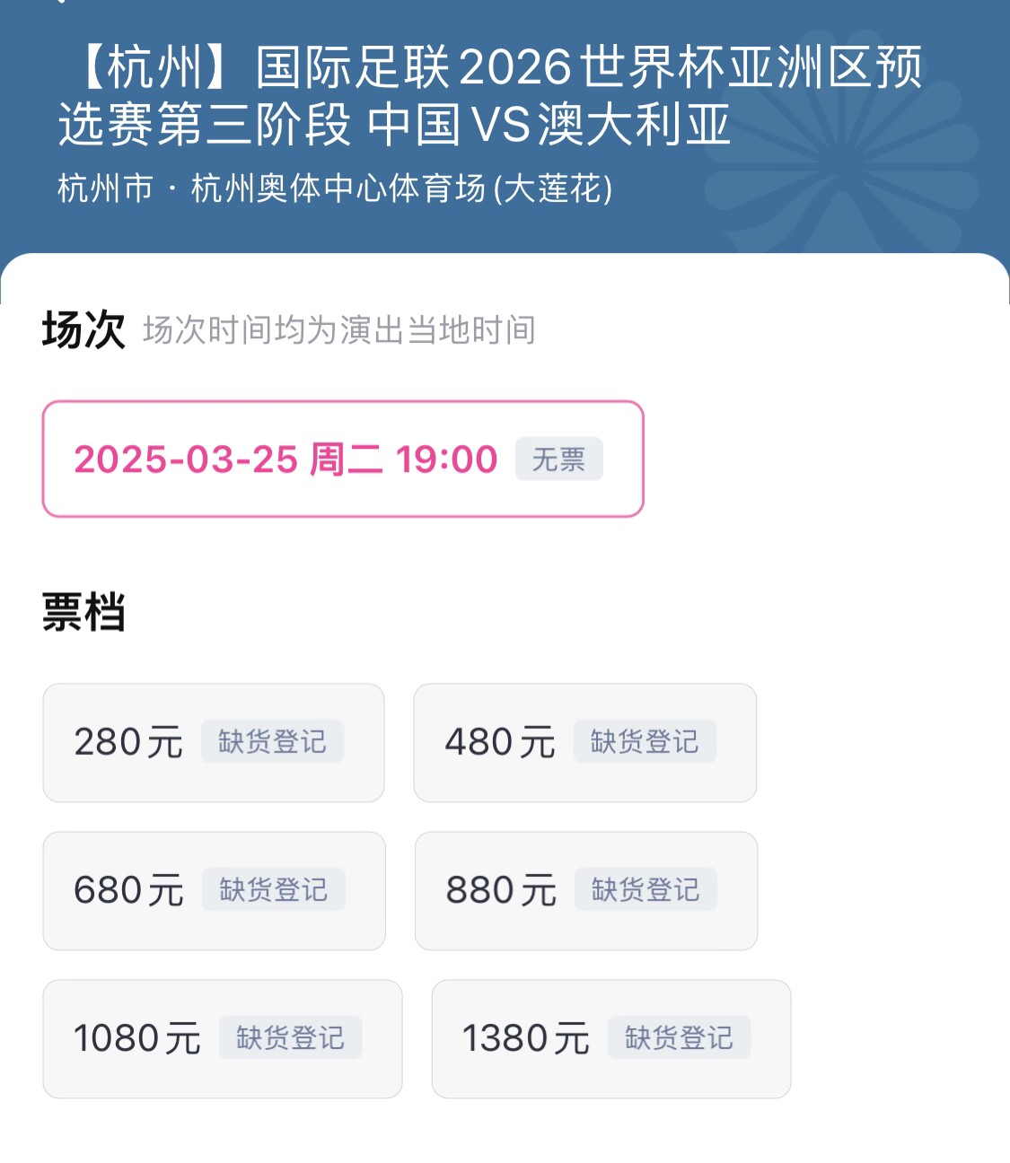 最后的捡漏机会?国足vs澳大利亚球票3月11日0:00停止退票