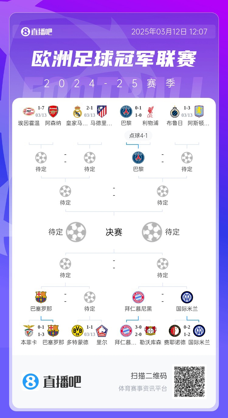 欧冠1/8决赛次回合明天再战,将决出最后4个晋级名额。焦点战皇马客战马竞,姆巴佩、维尼修斯、小蜘蛛们会交出怎样的成绩单?