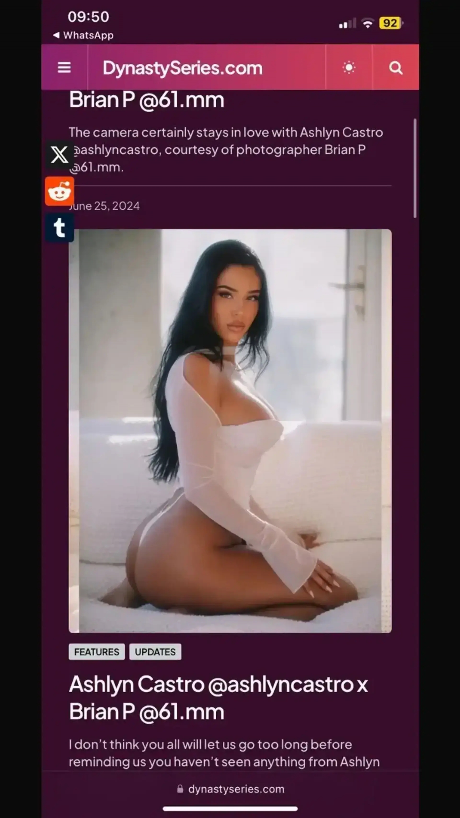03月12日讯 上月末,有小道消息传出贝林厄姆的女友阿什林-卡斯特罗(Ashlyn Castro)有着不光彩的过往,她的照片出现在了一家高端应召女网站的页面。此后关于阿什林曾是妓女的谣言在社媒上传播开来。
