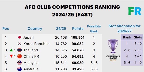 马来超 40.039分 2026-27赛季亚冠精英联赛名额1个
