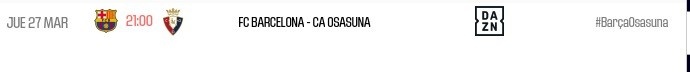 西甲官方:巴萨vs奥萨苏纳的27轮补赛于3月28日凌晨4:00开球