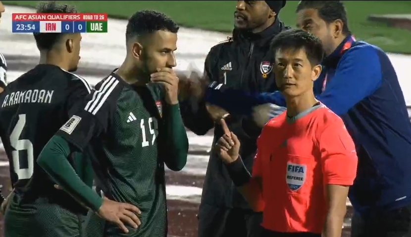 现场照明故障!伊朗vs阿联酋比赛中断,两队目前已经退场!