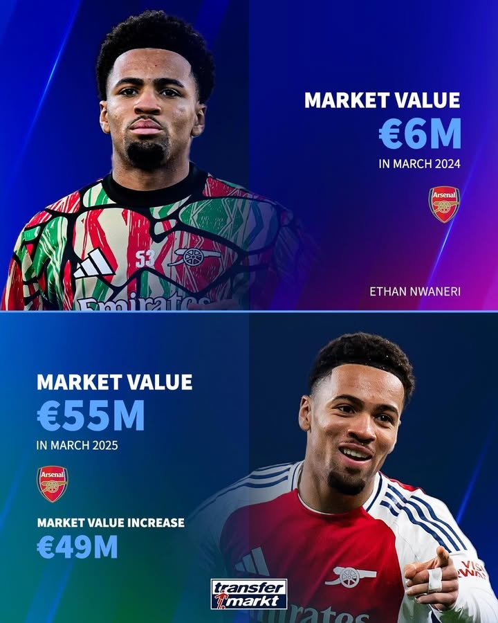 英超球员过去1年身价涨幅:帕尔默暴涨8500万欧 马尔穆什涨6000万