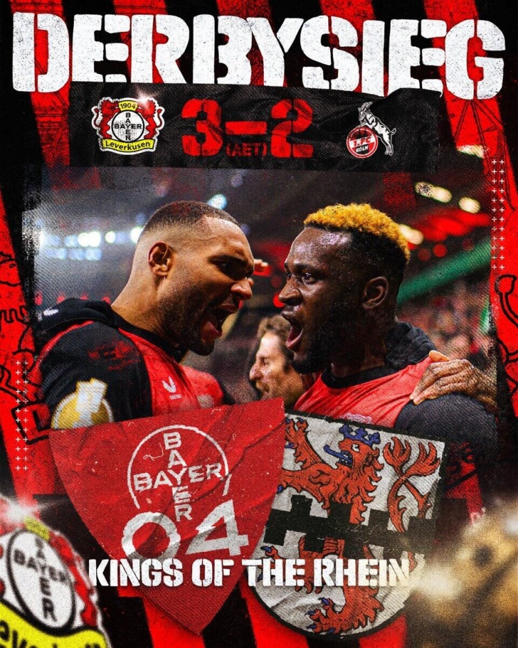 勒沃库森加时赛3-2逆转击败科隆,晋级德国杯四强。
