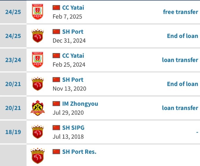 李申圆的个人页面中显示,今天他已经以自由身转会加盟长春亚泰。