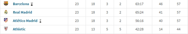 上一次23轮后出现如此焦灼的场面还是13/14赛季。那个赛季23轮后皇萨竞3队同积57分,分列前三。那个赛季争冠也持续到最后一轮,最终马竞夺魁。