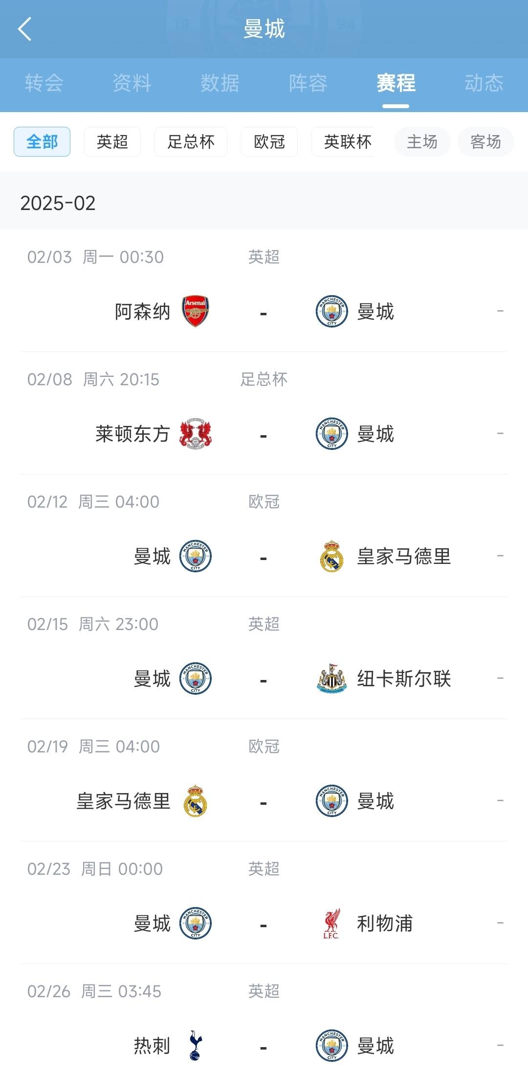 02月01日讯 北京时间2月3日0:30,曼城将对阵阿森纳。2月份曼城24天内将踢7场比赛,瓜迪奥拉出席赛前发布会时谈到了球队赛程。