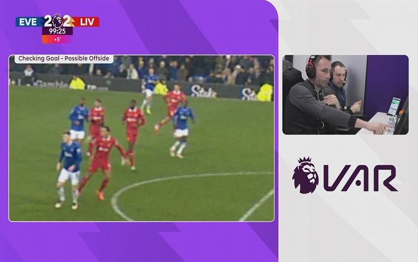 2月13日讯 英超第15轮补赛,利物浦vs埃弗顿。比赛第98分钟,塔科夫斯基读秒破门,埃弗顿2-2利物浦!VAR确认进球有效!