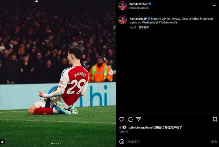 哈弗茨晒滑跪庆祝照:收获一场大胜,开始准备联赛杯的重要比赛 2月3日讯 本轮英超焦点战,阿森纳主场5-1击败曼城。赛后,哈弗茨更新社媒,庆祝这场大胜。哈弗茨晒出自己进球后滑跪庆祝的照片,并写道:收获一场大胜,现在迎接下一场重要的比赛!北京时间下周四凌晨4:00 2025/02/03