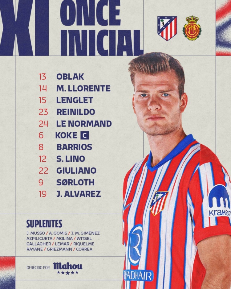 西甲-马竞vs马洛卡首发:阿尔瓦雷斯领衔出战,格列兹曼替补 2月2日讯 北京时间2月2日1:30,西甲第22轮,马竞主场对阵马洛卡,双方首发公布,马竞方面,阿尔瓦雷斯首发,格列兹曼替补。马竞首发:1-奥布拉克、14-马科斯-略伦特、15-朗格莱、23-雷尼尔多 2025/02/02