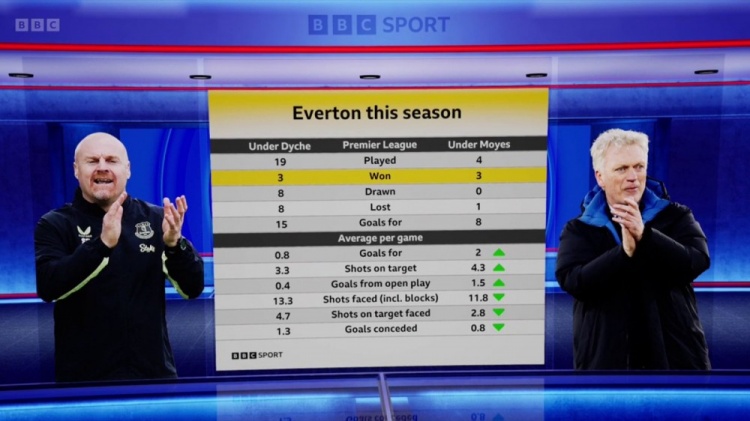 立竿见影!莫耶斯带队3胜1负,场均进球、失球等多项数据优于戴奇 2月2日讯 英超第24轮比赛,埃弗顿主场4-0完胜莱斯特城。据BBC统计,莫耶斯上任以来埃弗顿3胜1负,场均进球、失球等多项数据均优于戴奇执教期间。本赛季戴奇、莫耶斯执教埃弗顿数据:比赛——19比4取 2025/02/02